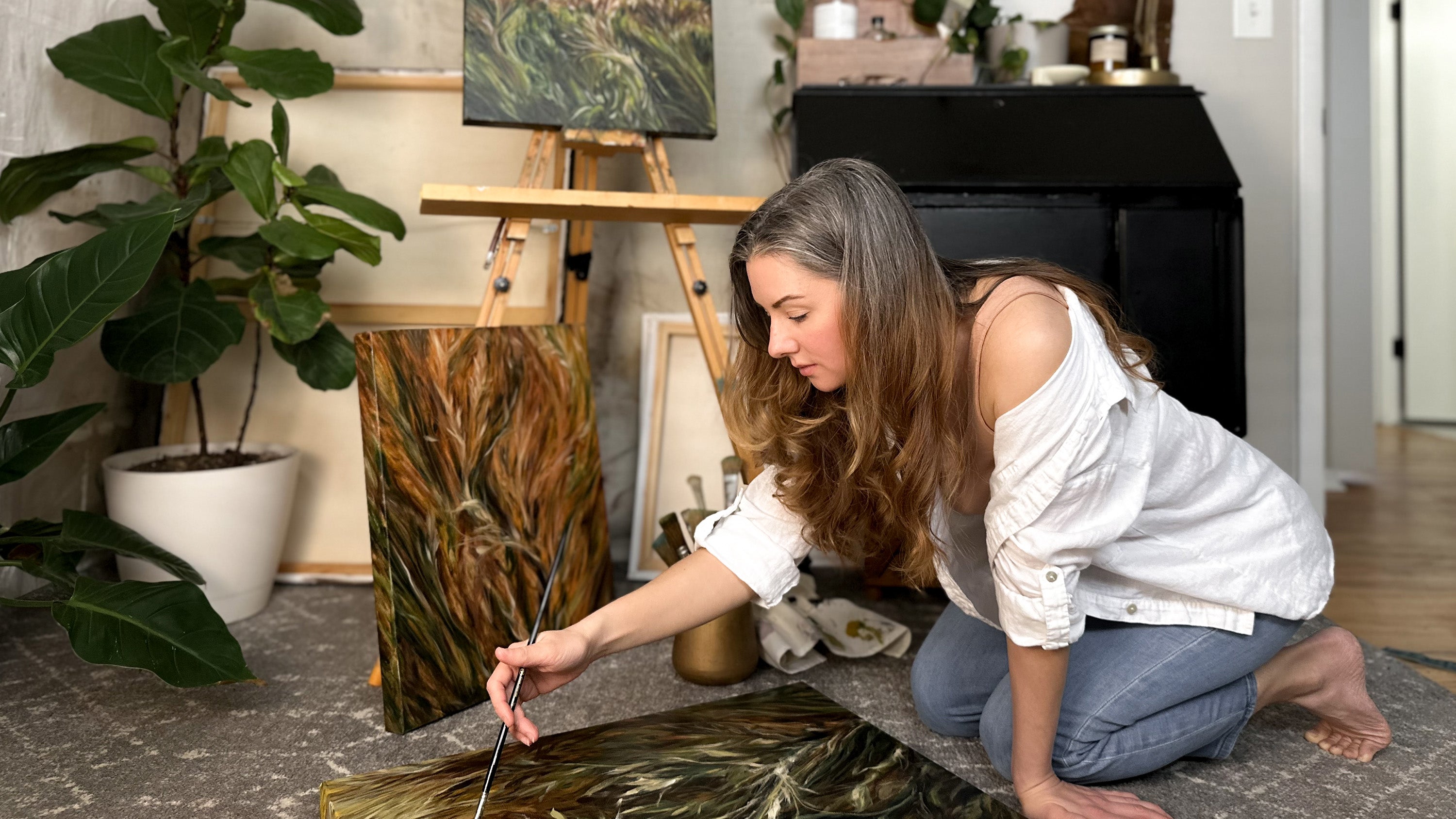 Although I studied fine art and art education, I'm self-taught in oil painting. I've been painting seriously since 2018, and today I work out of my home studio. The flexibility allows me to create whenever inspiration strikes and to balance my life as a mother. I paint in collections but give myself room to explore and shift within each body of work. It’s a fluid, intuitive process that allows me to explore the power of color, emotion, and intentional stillness.